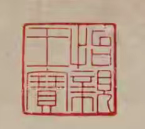 1.6亿拍品中的"怡亲王宝"钤记明显与《唐后行从图》接近。但无须细看,也能留意到拍品藏印线条生硬,“怡”字的诊治处都是锐角,“亲”字终末一笔彰着艰辛弧度。