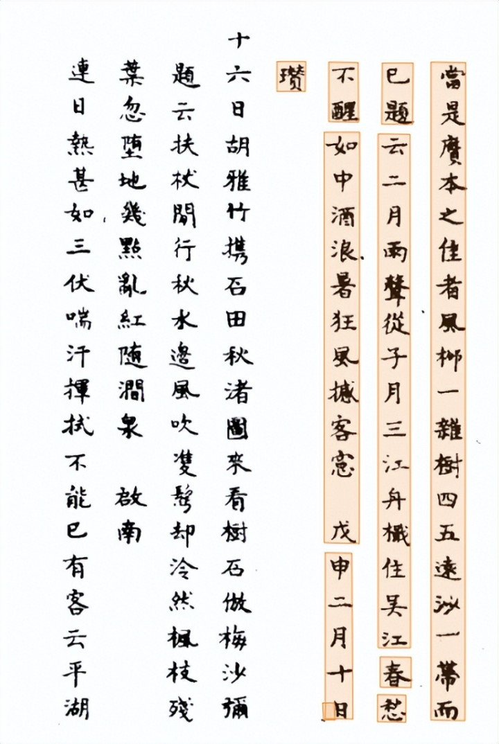 既然不是石渠宝笈所录,那么1.6亿的拍品是否为倪瓒同题另本呢?咱们依据题跋的诗文“二月雨声连子月”来寻找痕迹。