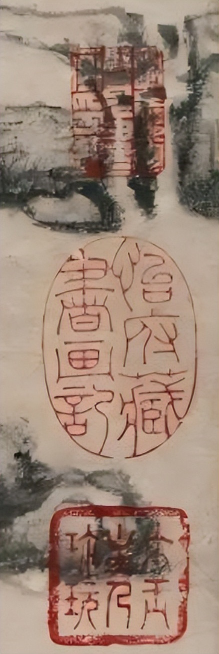 三印中仅“怡府藏字画印”较为明晰。不错看到印文相配生硬,怡字的心部,本该圆转,却像几根洋火棍子拼搭起来。这种电刻水善良弘晓的其它印鉴轨范件比拟,水平差了太多,证明是伪印。