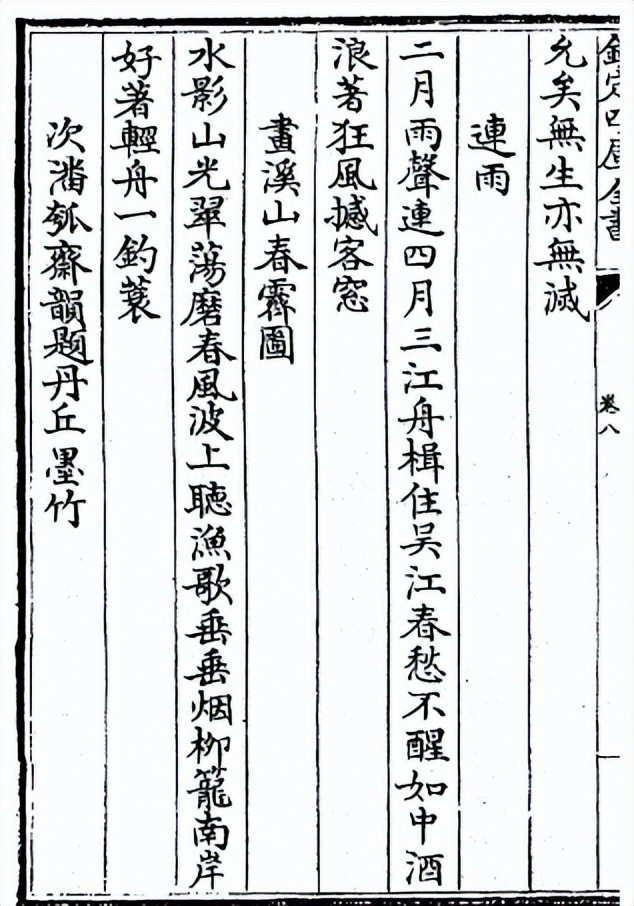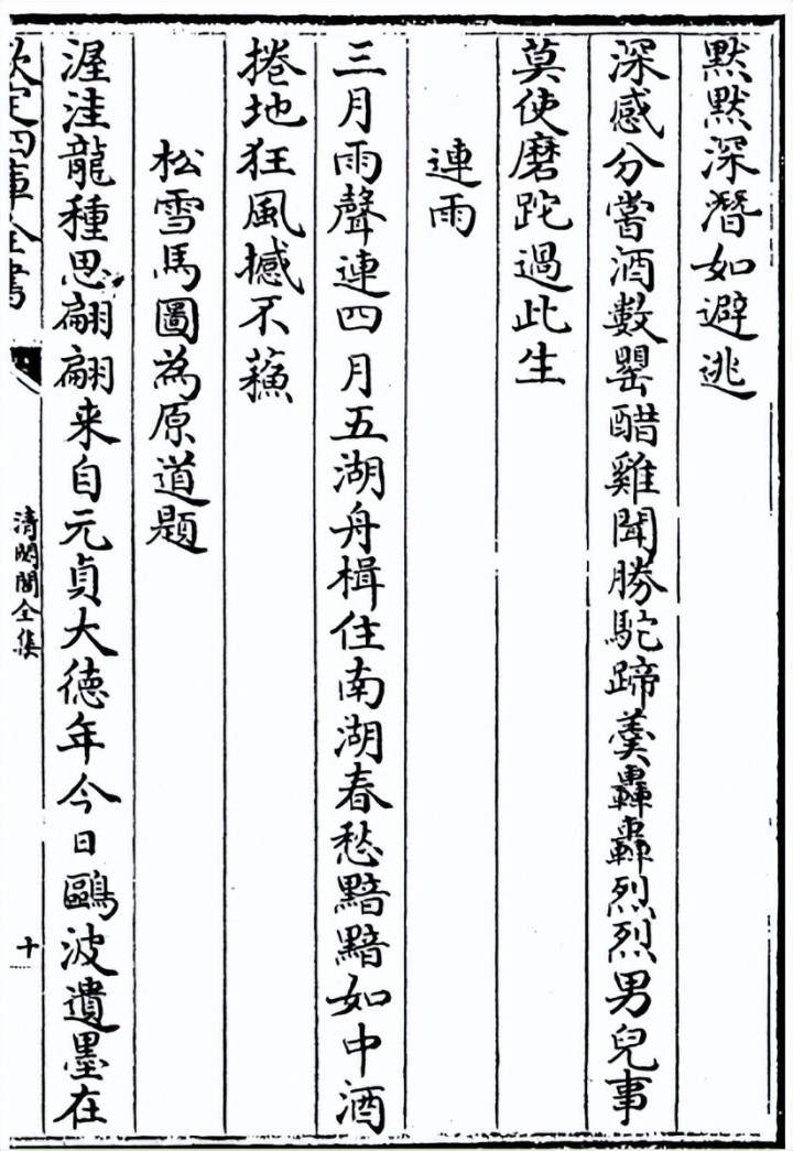 内容上在《清阁全集·卷八》还有《连雨》一诗的另一个版块,与李日华记录的更适宜,这是诗东谈主贬抑有计划,改写的成诗。