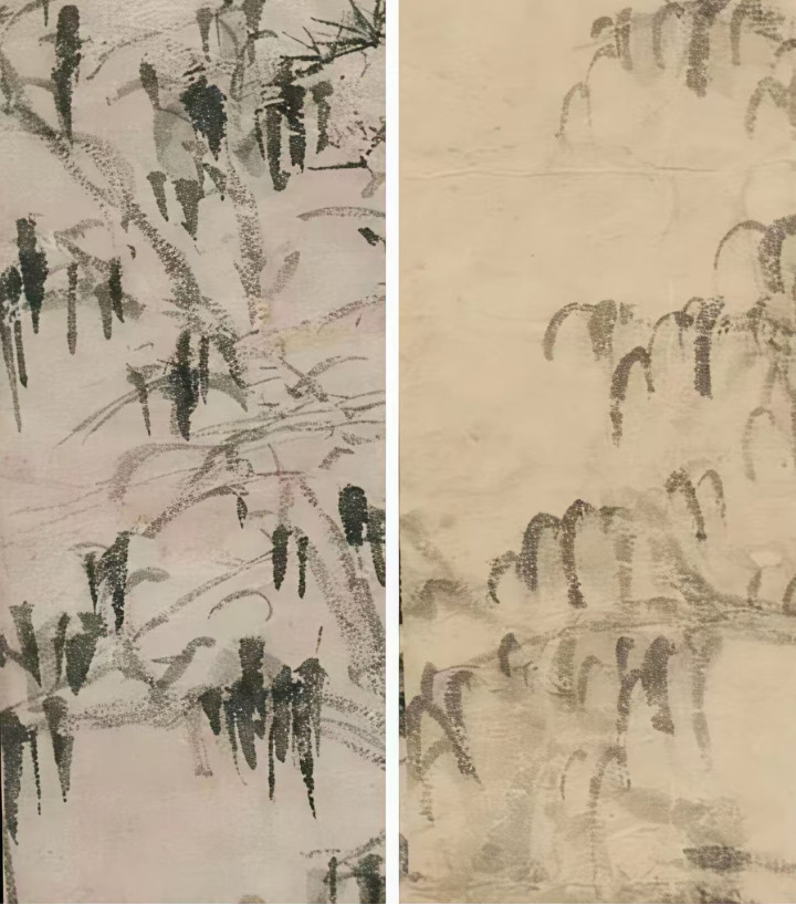 左为拍品树叶,右为台北故宫容膝斋图树叶