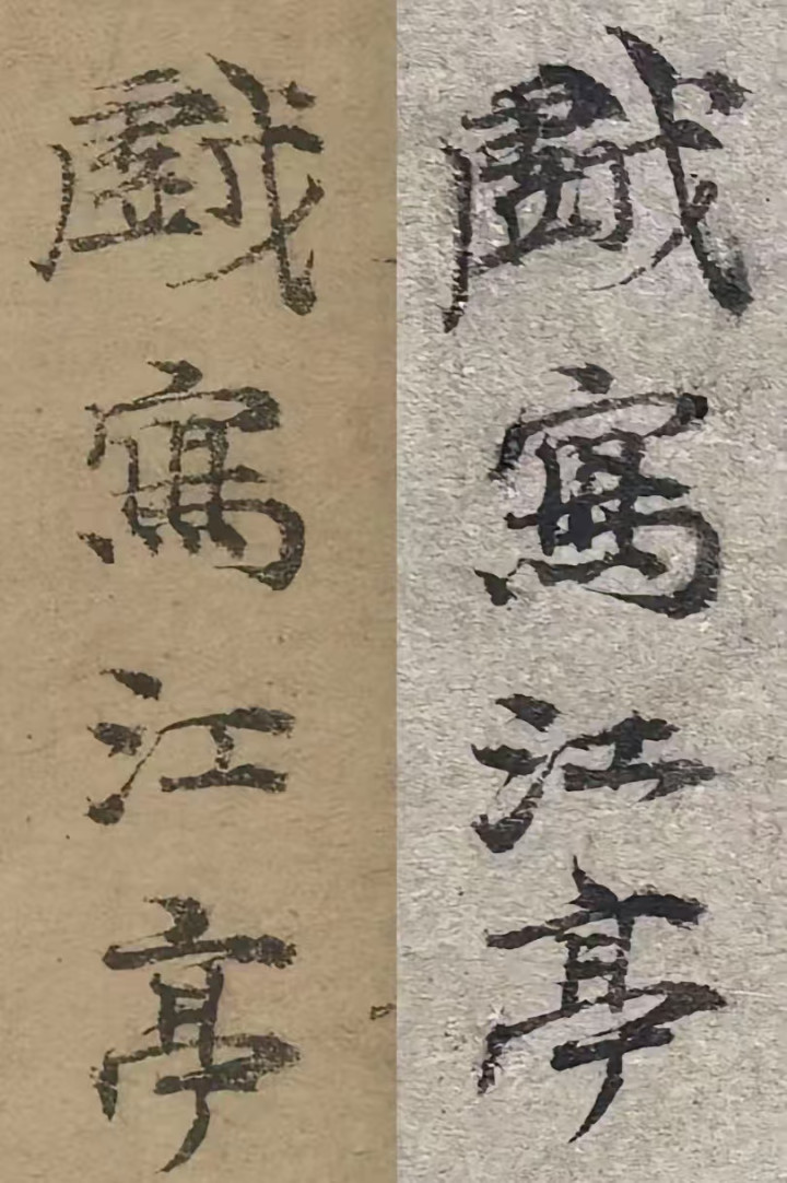 左为台北故宫江亭山色图题字,右为拍品中的题字
